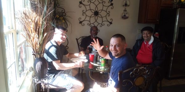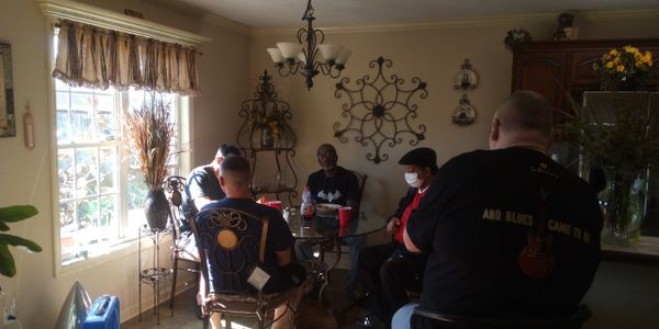 Chaplain McCarther meeting with the guys at the Outreach House in Alabama for breakfast